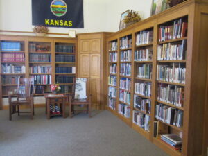 The devastating flood of 1951 reduced the library’s contents by ninety per cent. Only the top shelf of books and furniture were saved. Gone, also, were many handwritten or typed unpublished manuscripts on local history and biographies. Books were replaced through the generous donations from people from Wichita, Kansas, and throughout the United States.